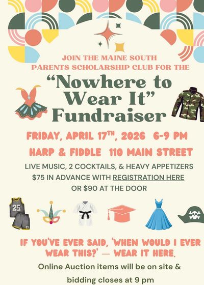 We will be having our annual online holiday auction, featuring awesome Maine South items and some other fun stuff! To launch the auction, we will be having an Ugly Sweater themed social. Save the date: December 9th, 7-9pm at Harp and Fiddle.